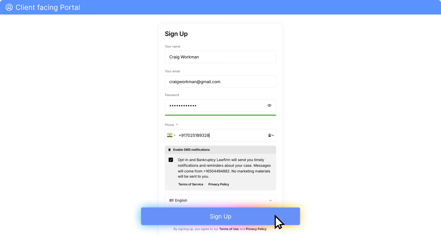 Clients will be directed to sign in and create a password for their account, once they are in they will see any tasks assigned to them in order to start their case.