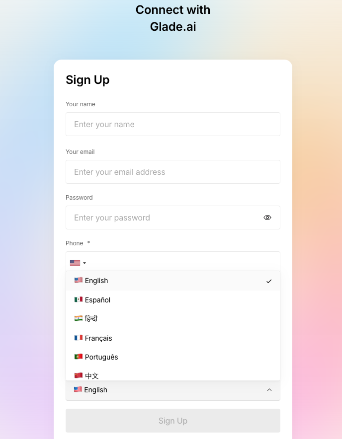 At Glade, we understand the importance of clear communication, no matter where your clients are located. That’s why our software and AI chat are designed to automatically detect and adjust to the default language set on your client’s computer.
