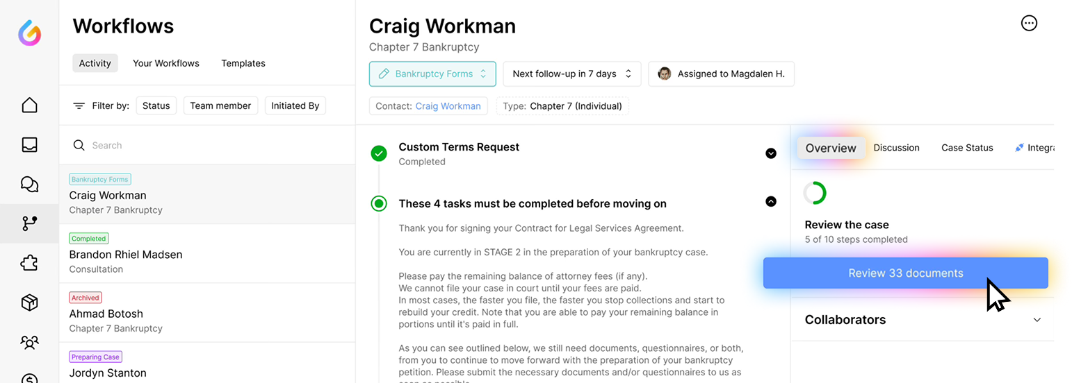 Managing document collection for cases can be time-consuming, but Glade's AI makes it simple and efficient. Here's how our automated document checklist feature streamlines your workflow: