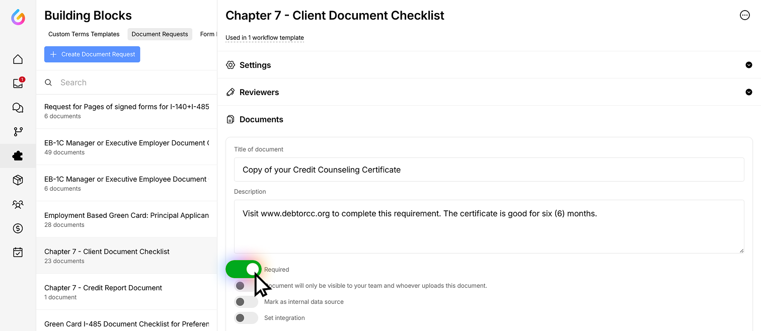Once you’ve accessed the document checklist, you can take advantage of the following features to customize and streamline your workflow: