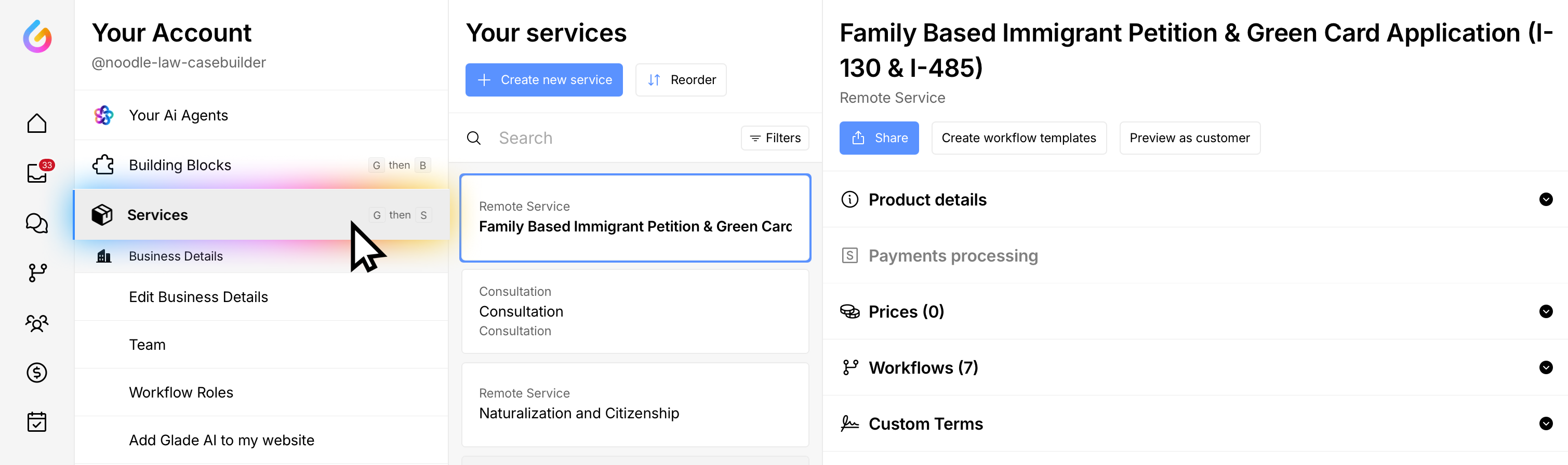 Click the "Services" tab then navigate to a page displaying the services you offer.