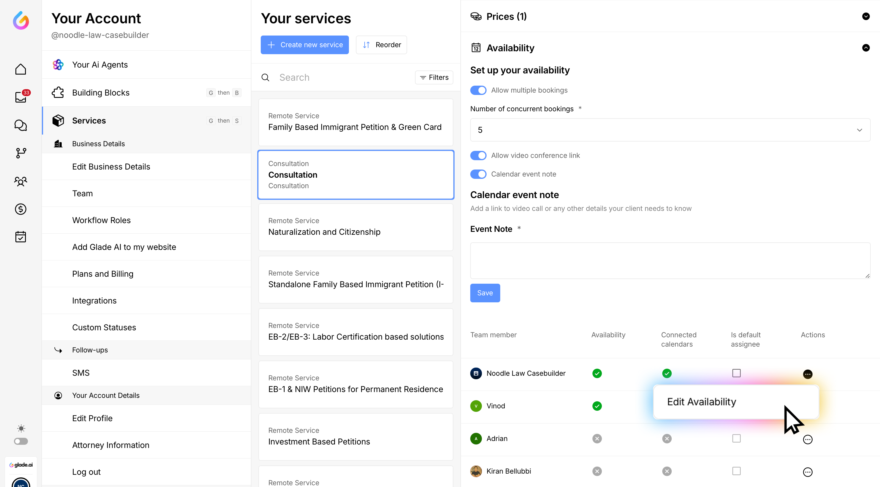 On the details page, look for the line labeled "Availability." Click on it to expand the selection, which will show you and your team members who have accounts with Glade.