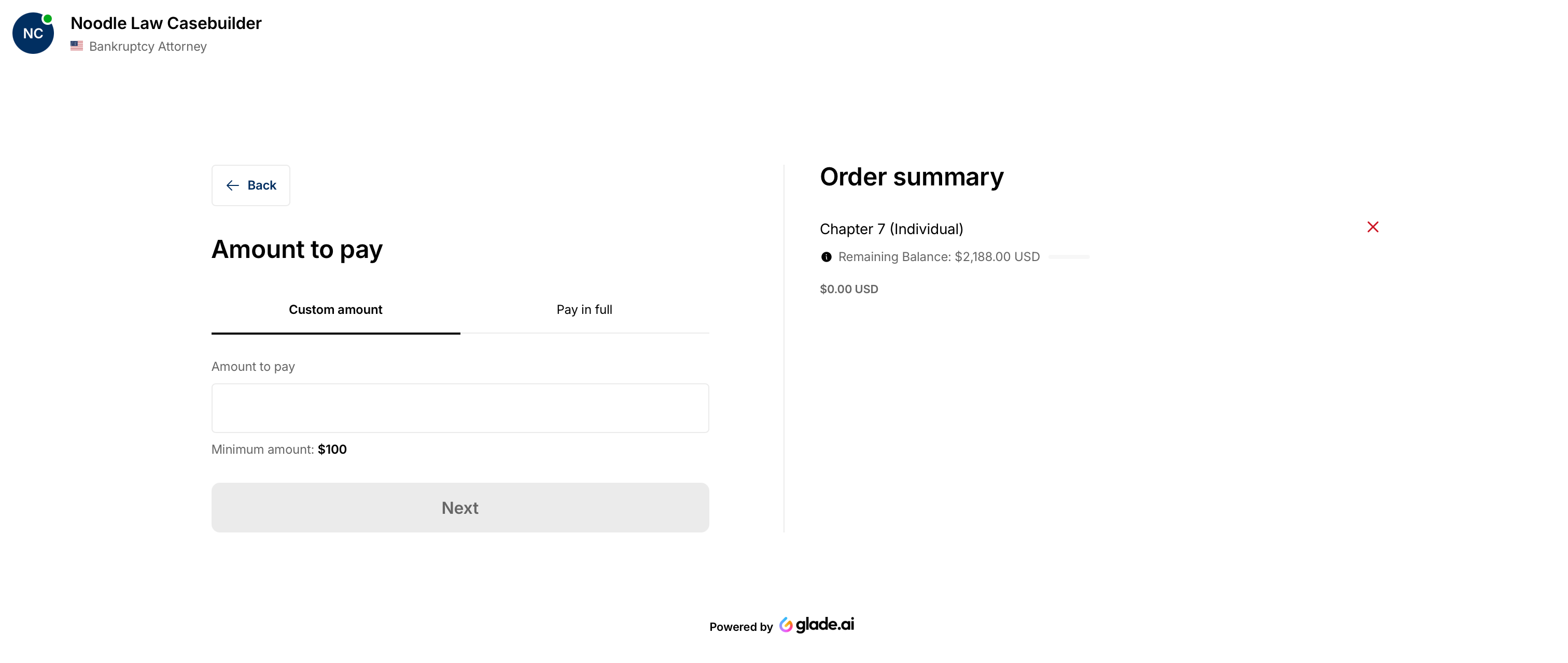 When you open the payment screen, you’ll see your total balance and any previous payments. You’ll have two options: