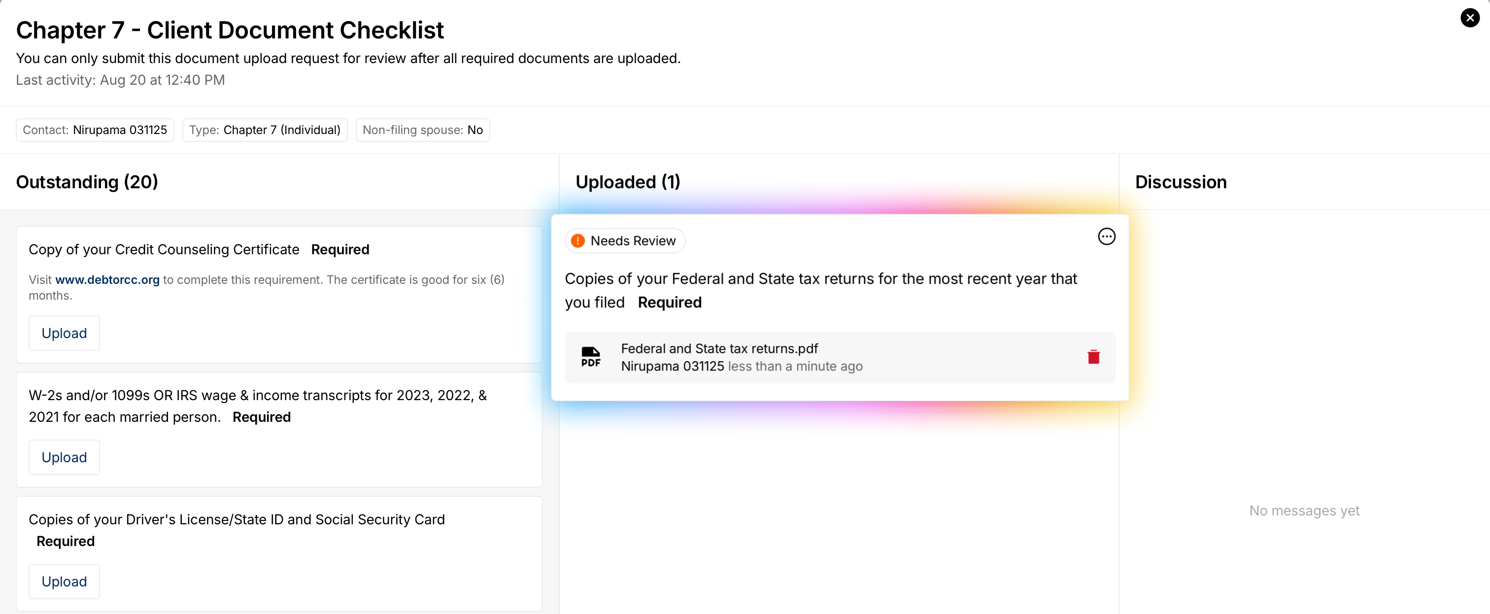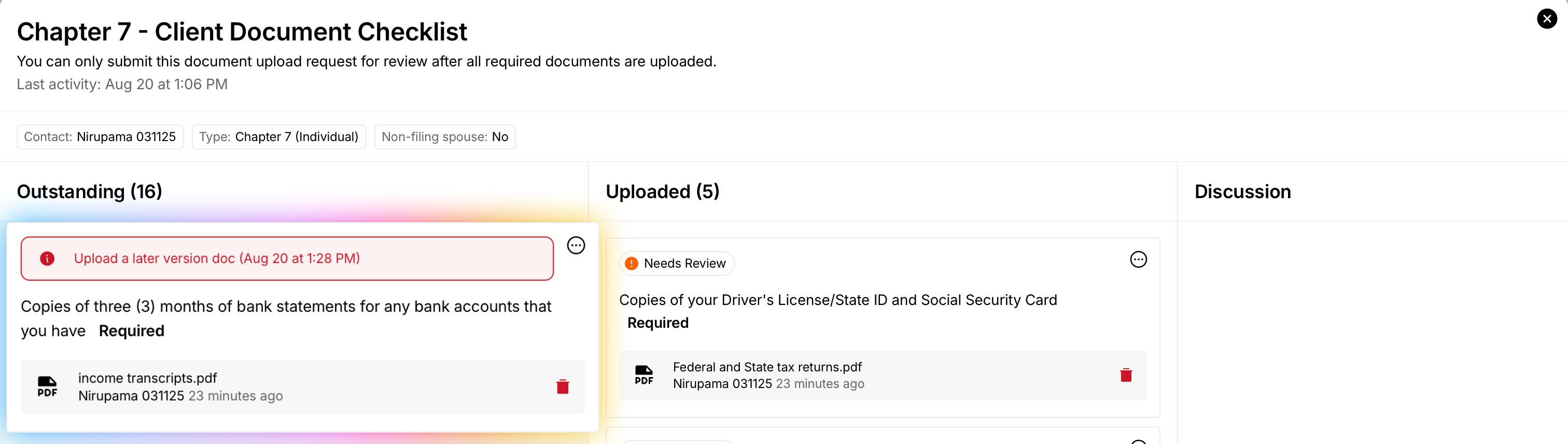 Uploading the right documents early helps your legal team verify facts, meet deadlines, and keep your Workflow moving without delays. This guide shows you how to find your Document Checklist, upload files, handle rejections, and submit everything for review.