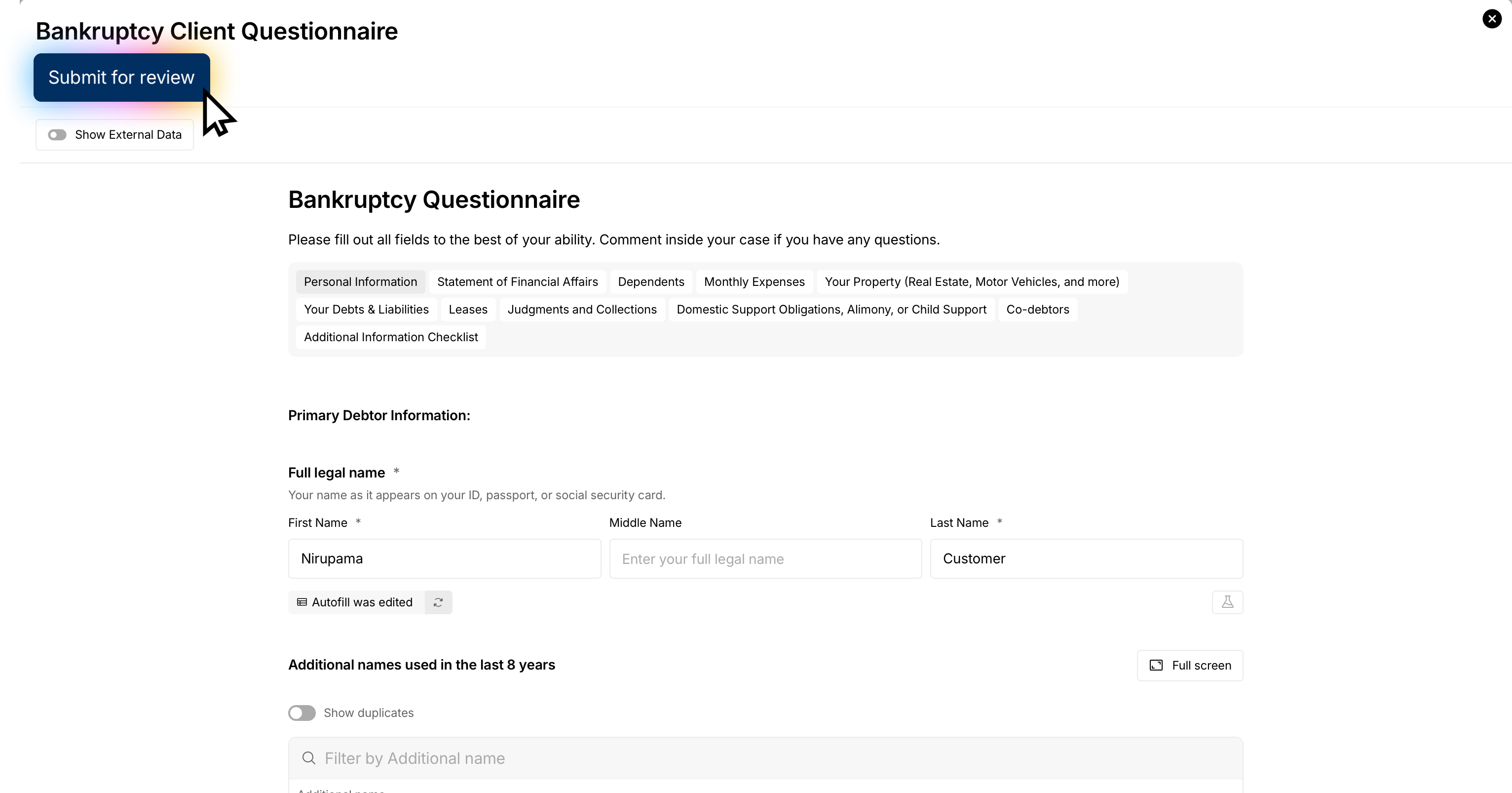 Your questionnaire helps your firm gather the key facts it needs to move your case forward quickly and accurately. Completing it early reduces back‑and‑forth, prevents delays, and unlocks the next steps in your Workflow.