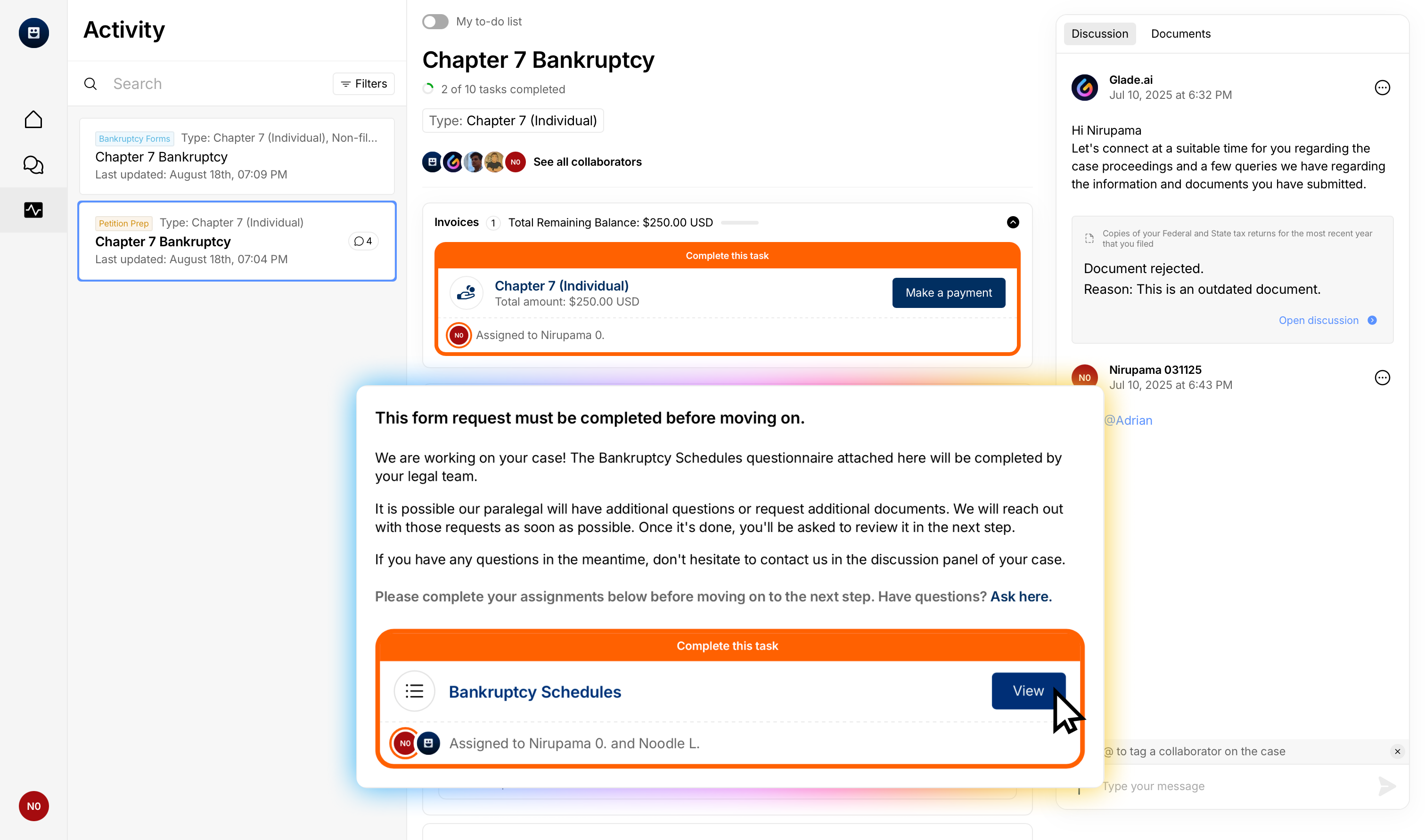 Sign in to your Glade client portal and navigate to the form request task from Home or Activity section.