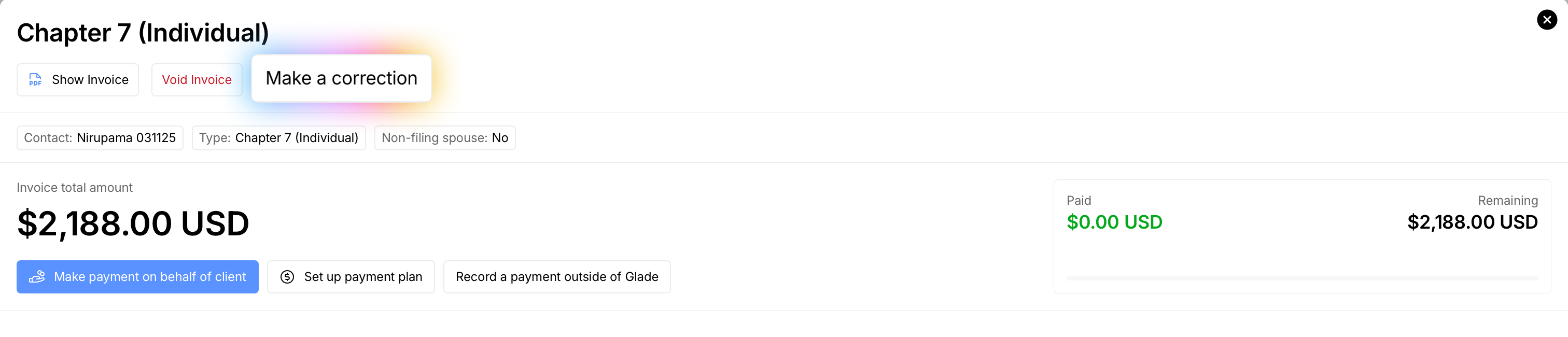 Don’t see “Make a correction”? Ensure you’re viewing the correct invoice and you have edit permissions. Try refreshing the page.