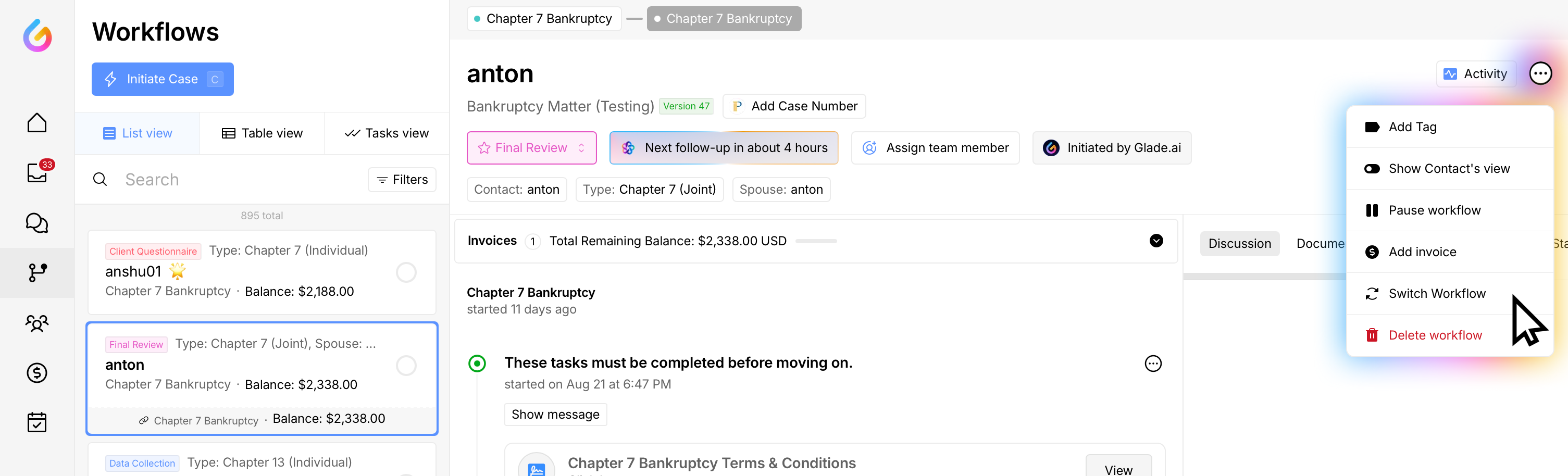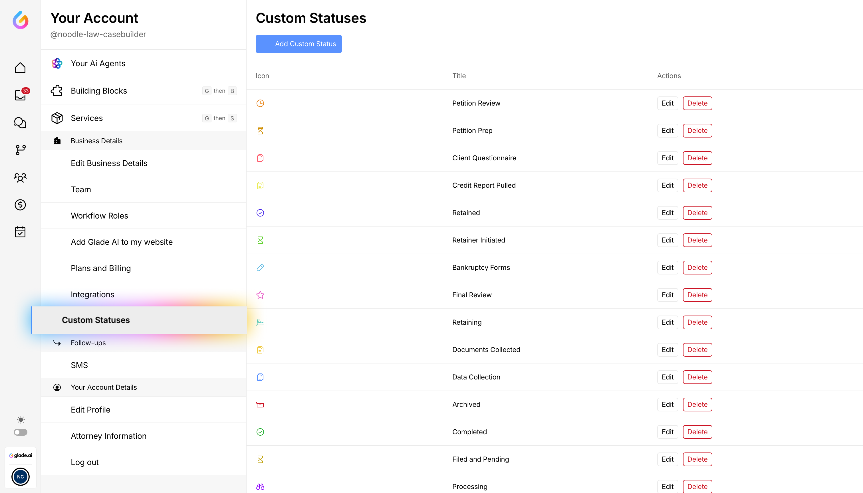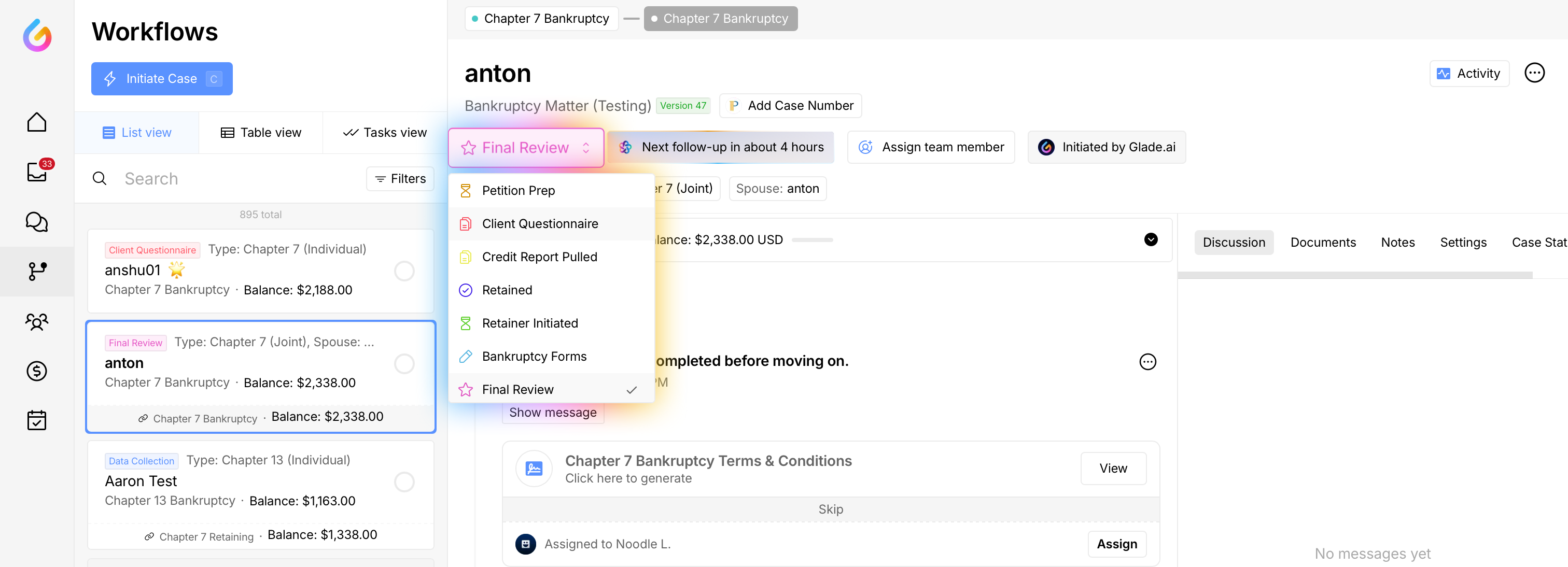 Glade already has default workflow statuses in workflows. But you can also customize these to your firm's specific needs.