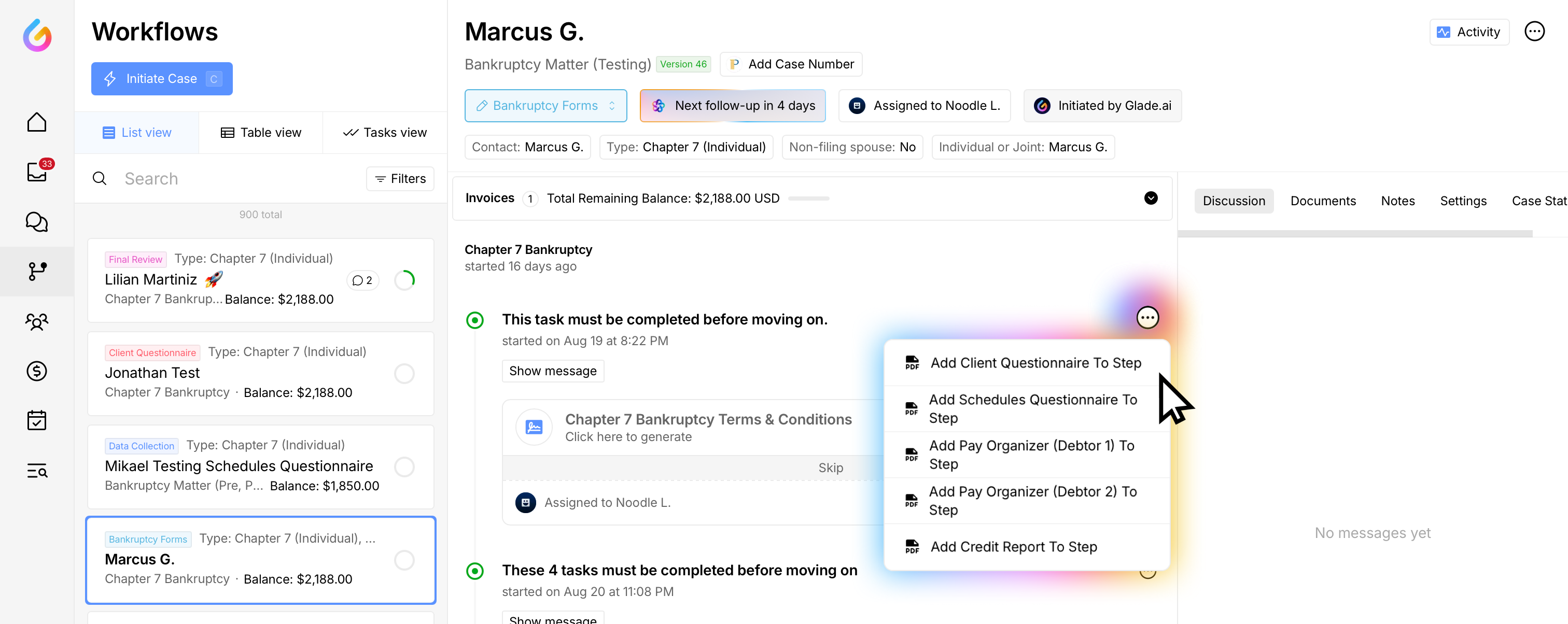 Add Bankruptcy Questionnaires, Pay Organizer & Credit Report to a Workflow